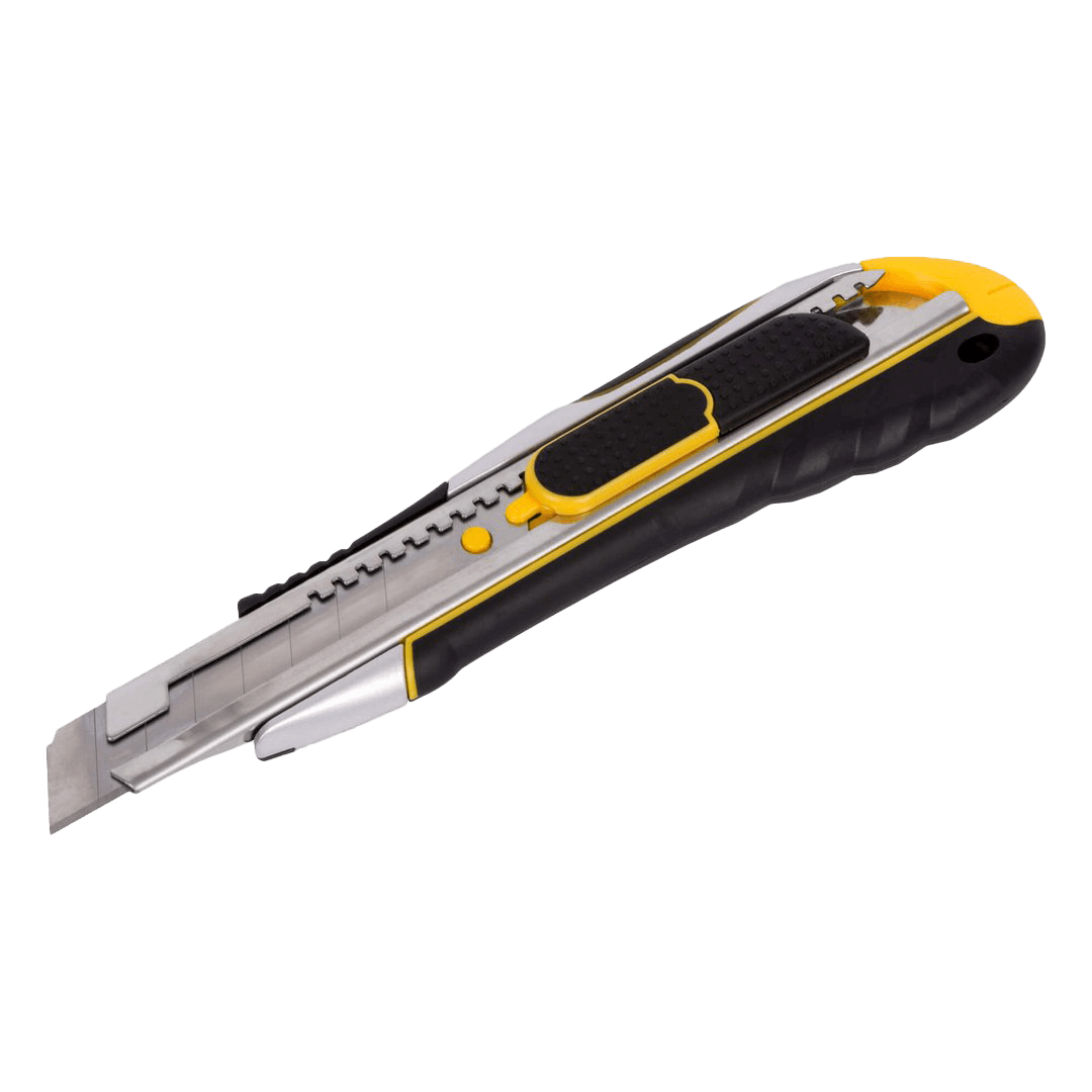 Das Roughneck Auto Retractable Snap Off Knife wurde mit Blick auf die Sicherheit entwickelt und verfügt über eine Klinge mit doppeltem System, die sowohl automatisch einziehbar als auch selbstverriegelnd ist. Hochwertiges, langlebiges Zinklegierungsgehäuse mit rutschfestem Komfortgriff für Sicherheit und Präzision. Bequemer eingebauter Klingenschnapper und einfacher Klingenwechsel. TÜV/GS-geprüft.