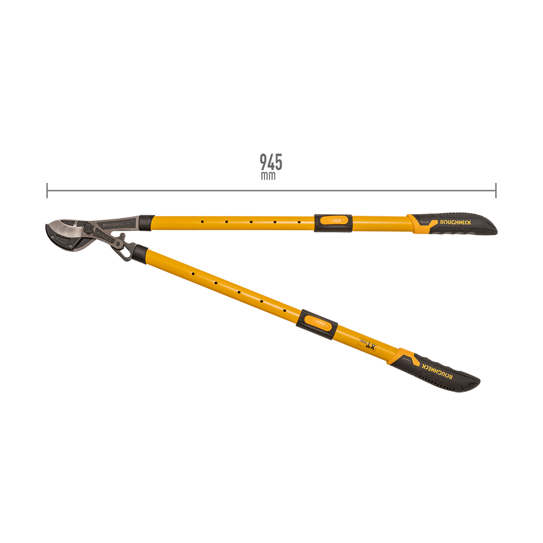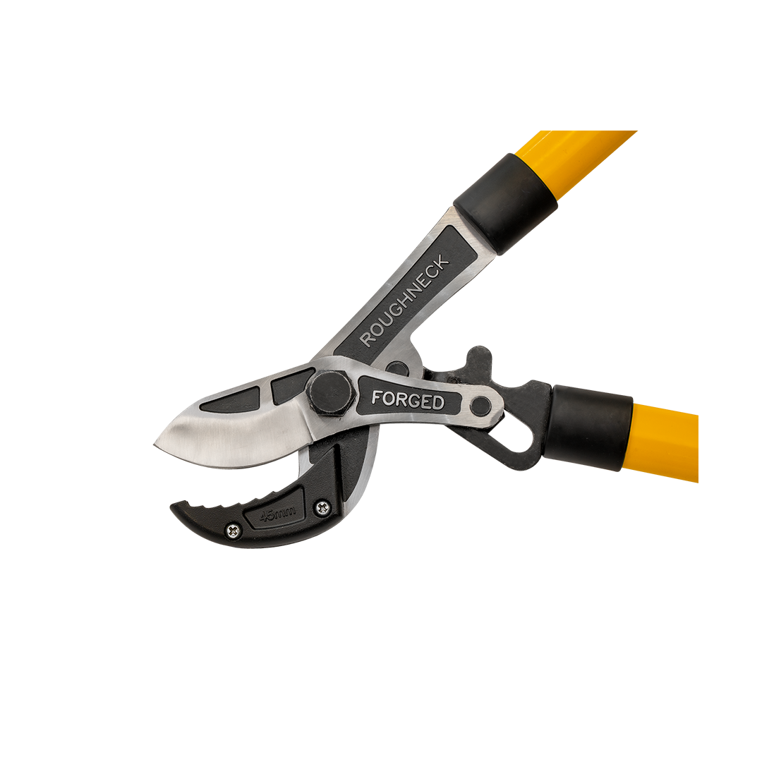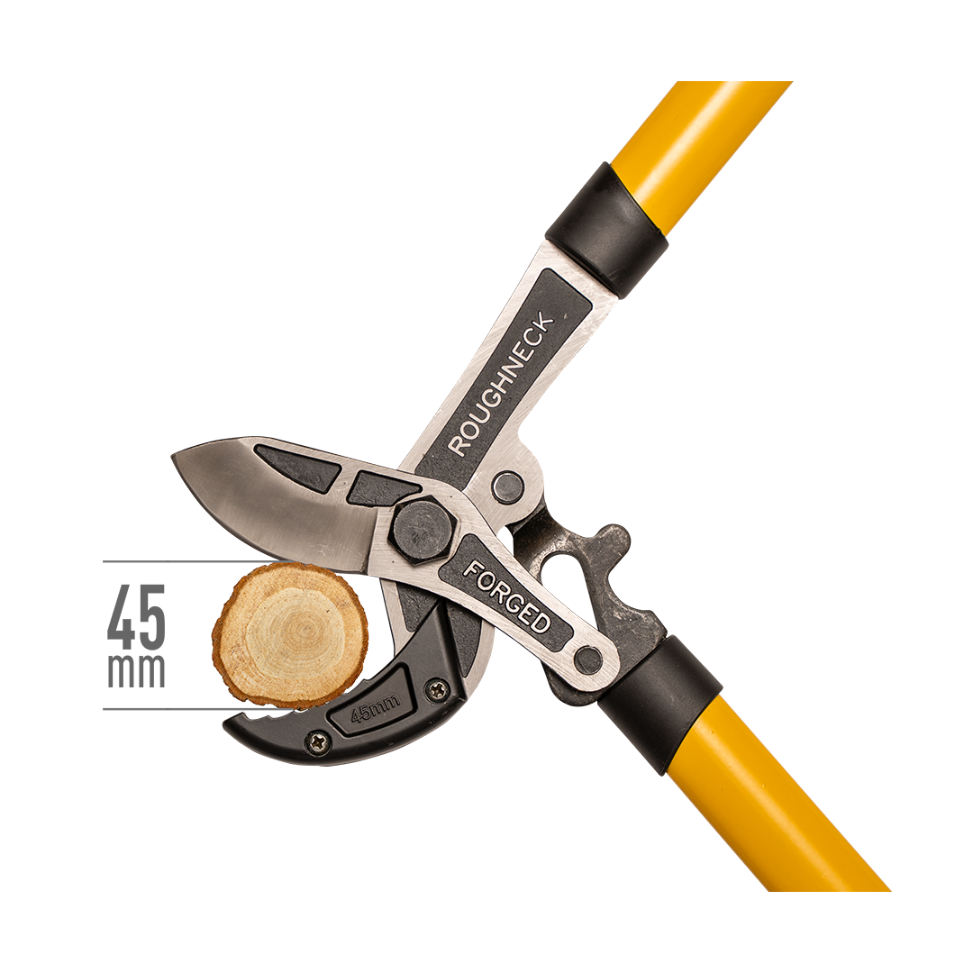 Gesenkgeschmiedet für zusätzliche Robustheit, bieten die Roughneck XT Pro Teleskop - Astscheren eine kraftvolle Schneidleistung. Die hohe Hebelwirkung des Compound - Schneidmechanismus bietet eine beeindruckende Schneidleistung von 45 mm und schneidet mühelos durch trockenes oder hartes Holz. Der maximal greifbare gerillte Amboss stabilisiert das Material und verhindert ein Verrutschen. Die obere Klinge aus Chrom-Vanadium-Stahl sorgt für herausragende Robustheit und eine längere Schärfe. Die teleskopierbaren, robusten Stahlgriffe ermöglichen eine erweiterte Reichweite und verfügen über ergonomisch gestaltete Luftkissengriffe für maximalen Komfort.