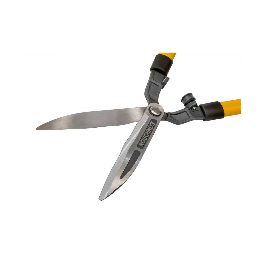 Die Roughneck XT Pro Heckenschere ist gesenkgeschmiedet, um extra Festigkeit zu gewährleisten. Wellenförmige Klingen packen Heckenzweige fest, sie sind aus Kohlenstoffstahl für herausragende Festigkeit und Haltbarkeit hergestellt. Schwerlast-Stahlgriffe bieten maximale Stärke und verfügen über ergonomisch gestaltete Luftkissengriffe für maximalen Komfort.